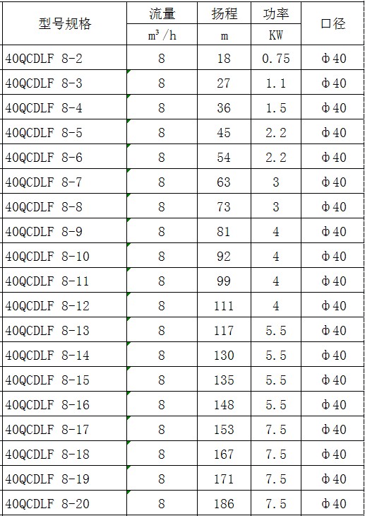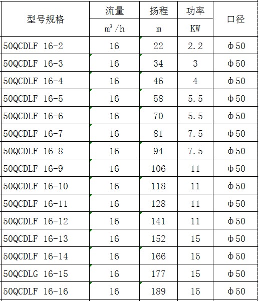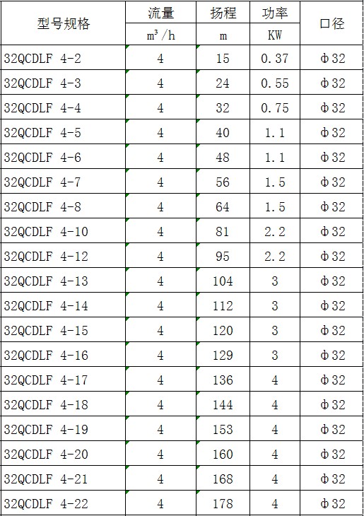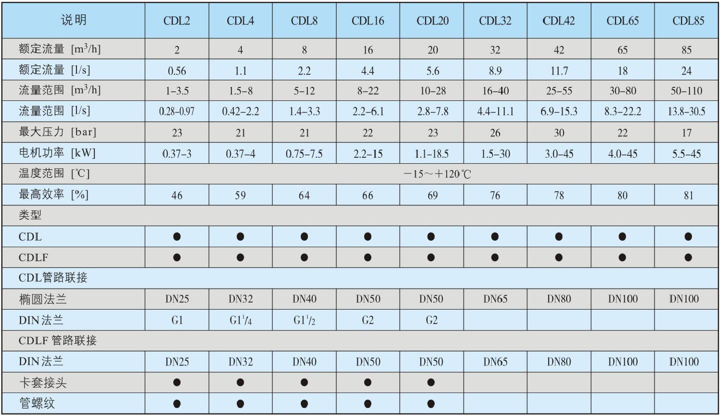 CDLF型不銹鋼多級泵產(chǎn)品參數(shù):