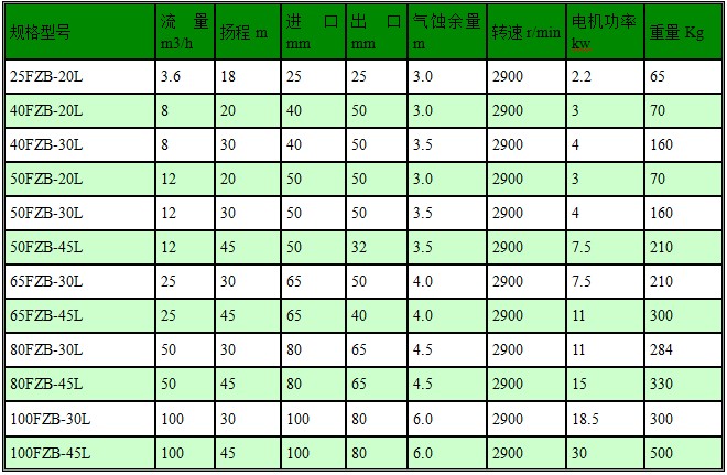 FZB氟塑料自吸泵動環采用四氟填充材料),或碳化硅(氧化鋁陶瓷99.9%是采用外混式自吸結構,除首次啟動時泵體內灌注液體,以后頻繁啟動,不需要注水式排真空,操作方便。泵體采用金屬外殼內襯氟塑料過流部件全部采用氟塑料合金制造,泵蓋、葉輪等均用金屬嵌件外包氟塑料整體燒結壓制而成,具有較強的耐腐蝕性,軸封采用外裝式的波紋管機械密封。