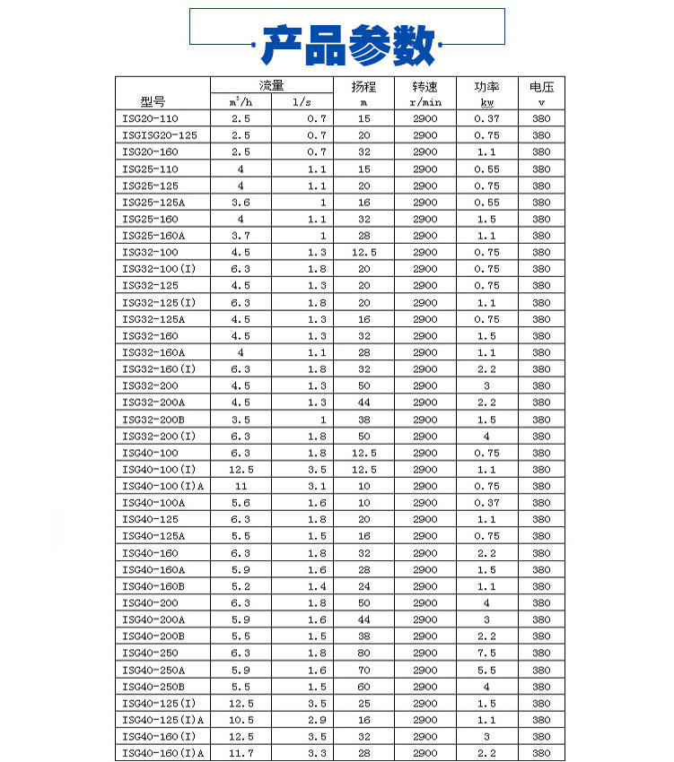 1、ISG型系列立式離心泵,供輸送清水及物理性質類似清水的其它液體之用。使用介質溫度80℃以下。適用于工業和城市給排水、高層建筑增壓送水、園林噴灌、消防增壓、遠距離輸水、采暖、浴室冷暖特環增壓及設備配套等。